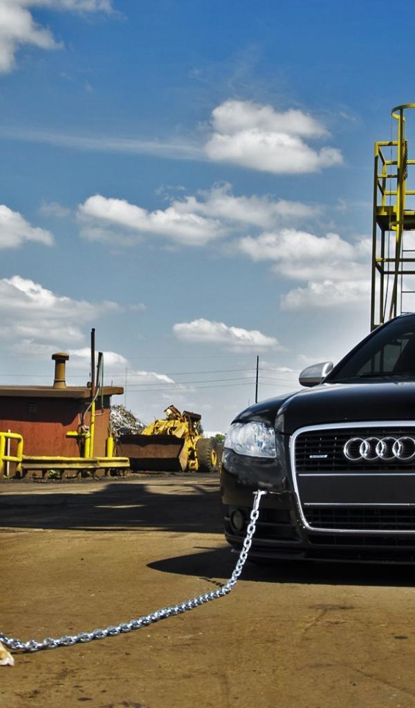 Обои Питбуль охраняет машину