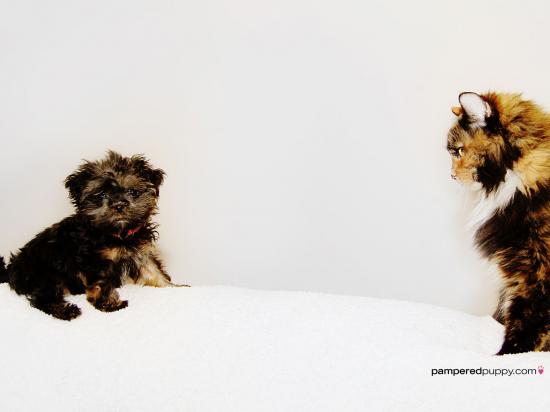 Обои Щенок шитцу с котом