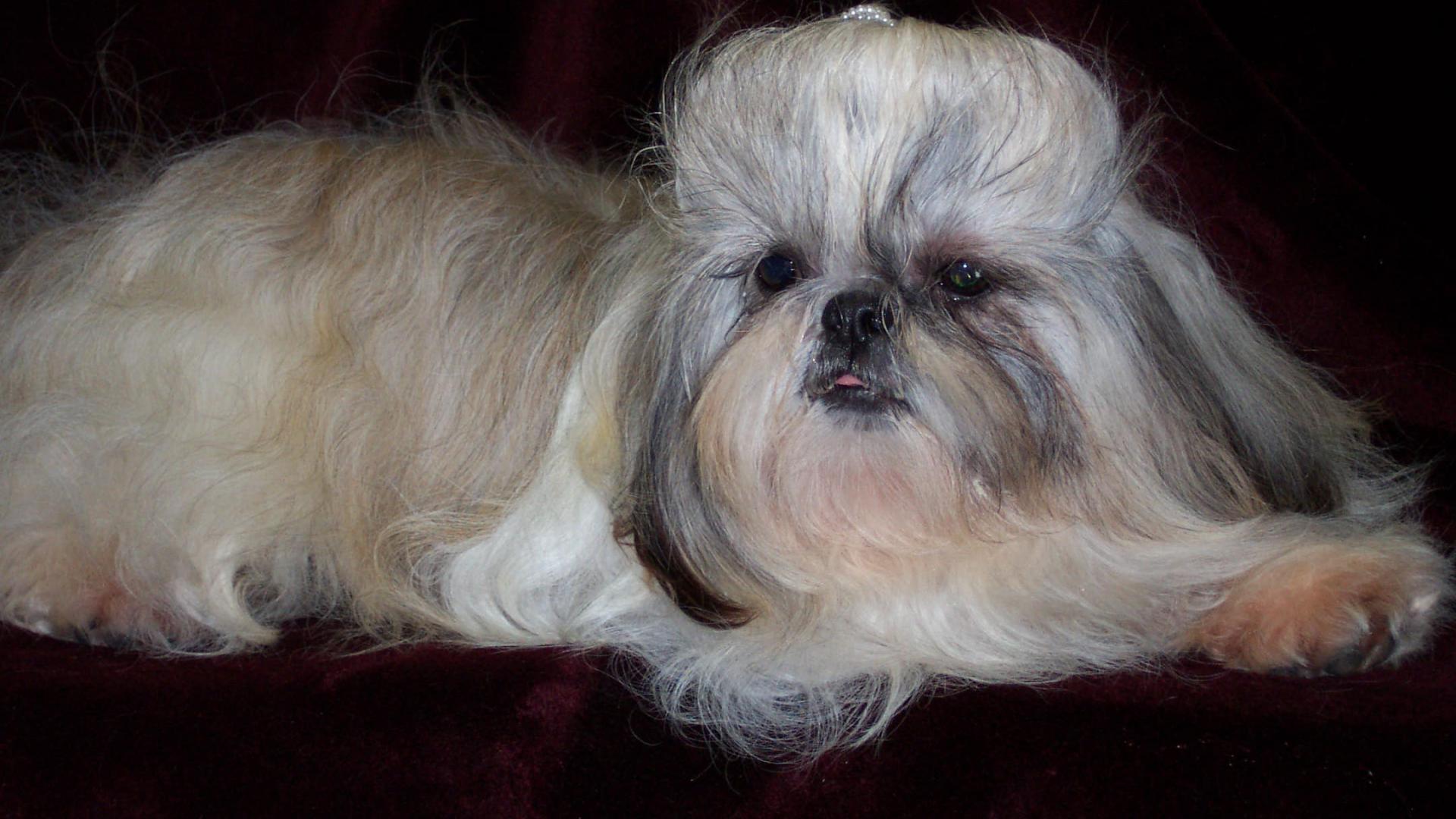 Обои Лохматый шитцу лежит