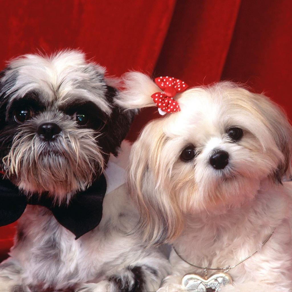 Обои Пара шитцу на красном фоне