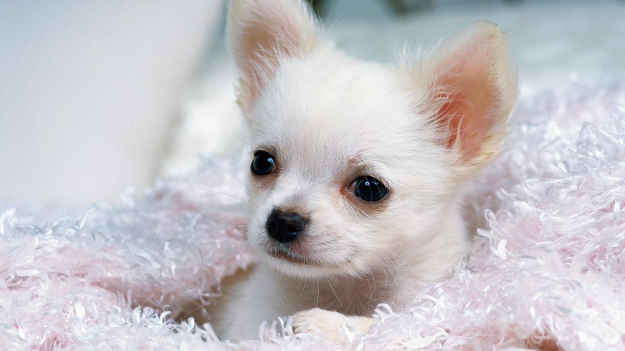 Обои Щенок белой чихуахуа на подстилке
