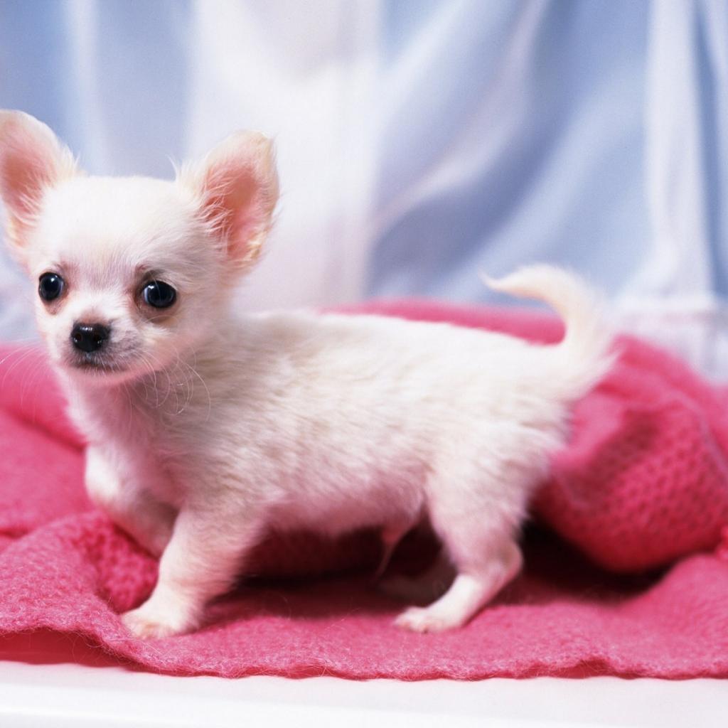 Обои Щенок белой чихуахуа на подстилке