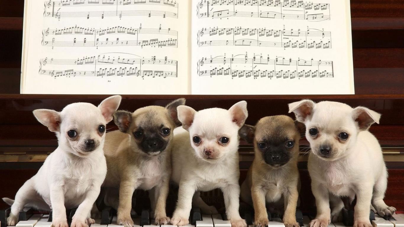 Обои Собаки чихуахуа на пианино