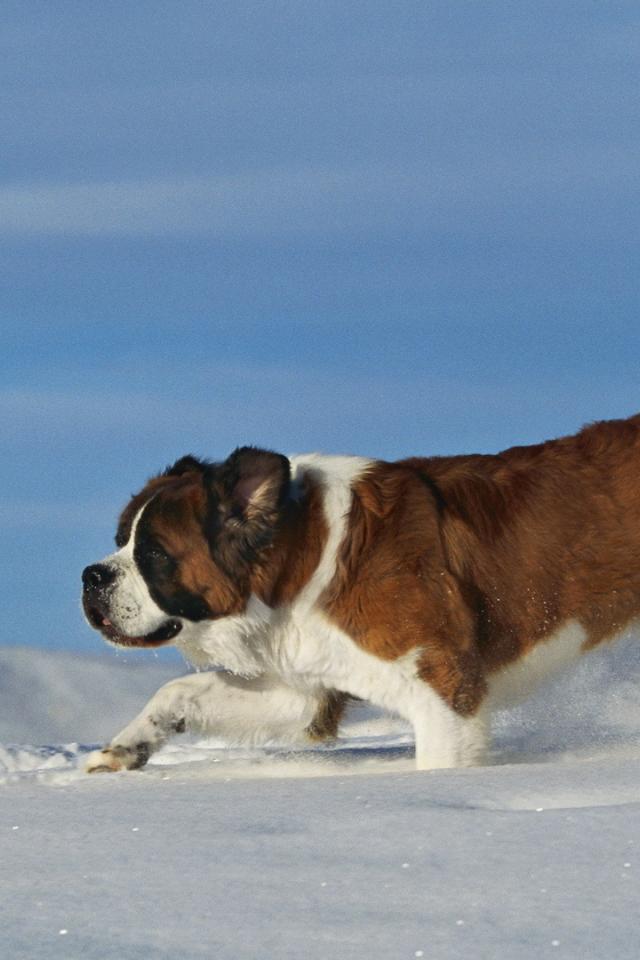 Обои Сенбернар в сугробе