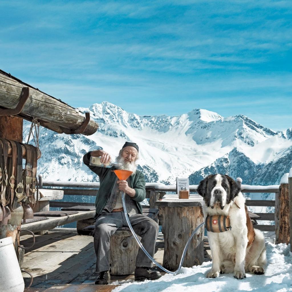 Обои Старик с собакой сенбернаром