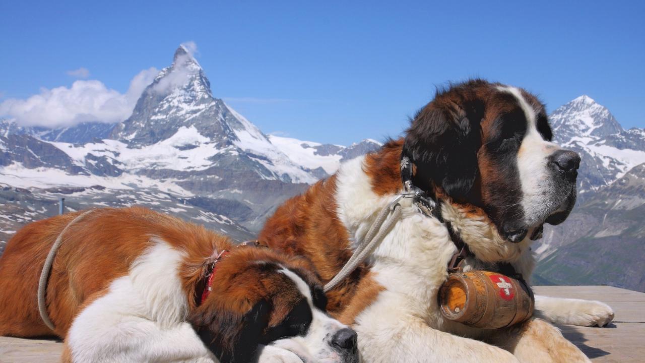 Обои Два сенбернара в горах