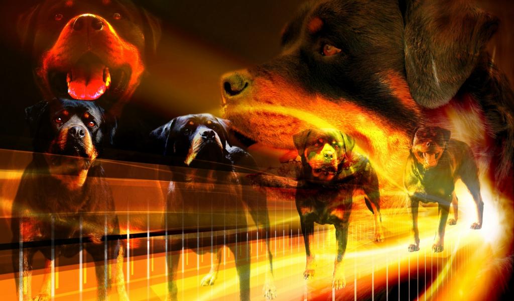 » Обои Много собак ротвейлеров