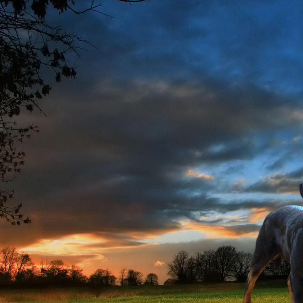 Обои Ротвейлер на фоне заката