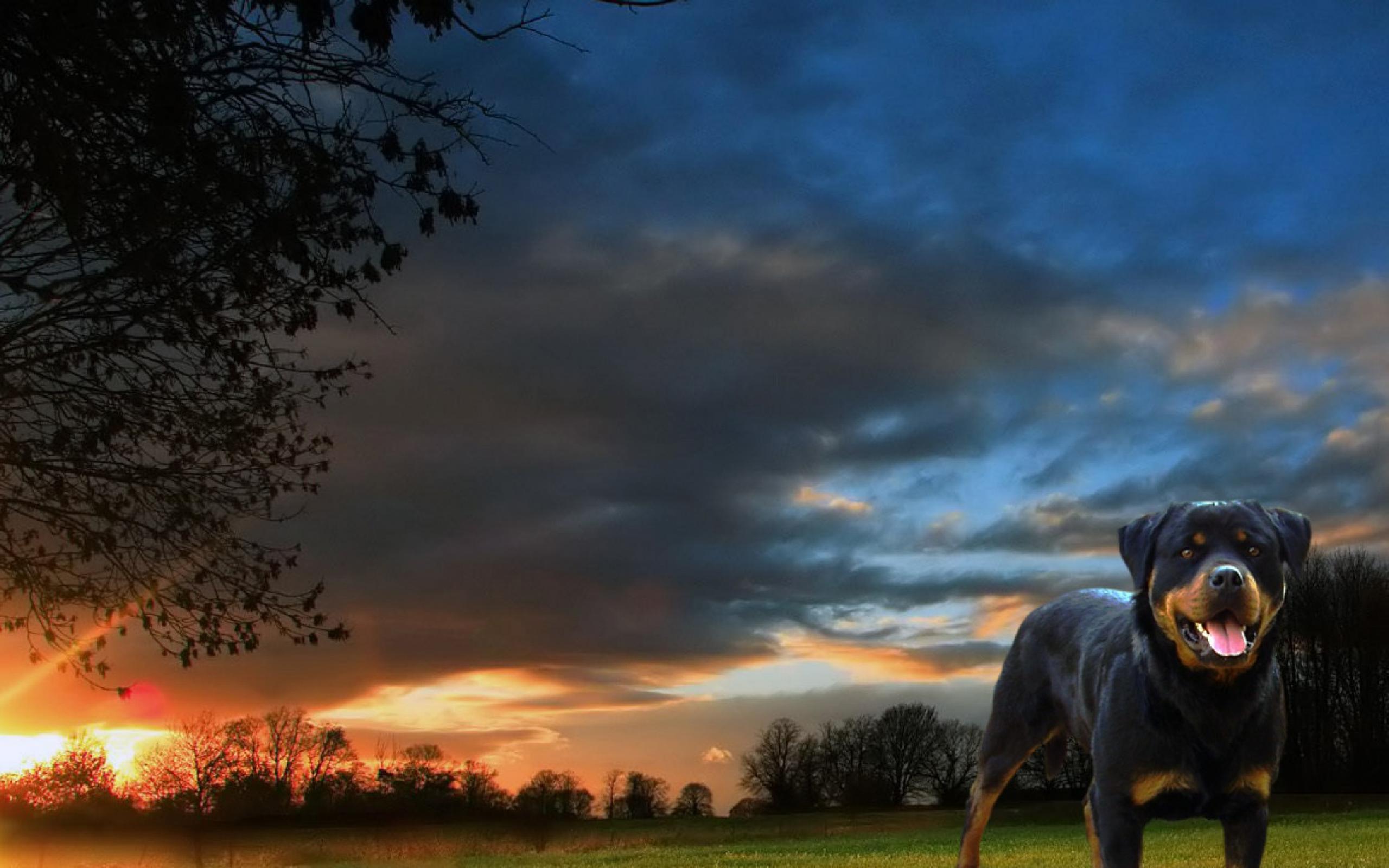 Обои Ротвейлер на фоне заката