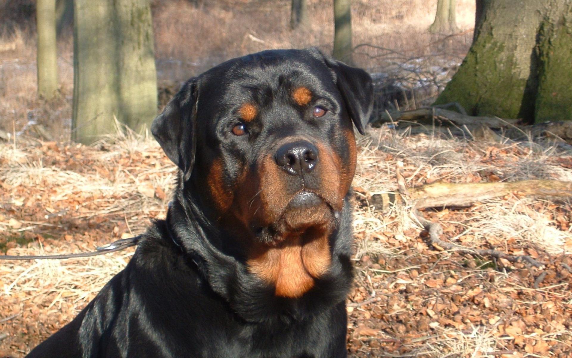 Обои Ротвейлер в лесу