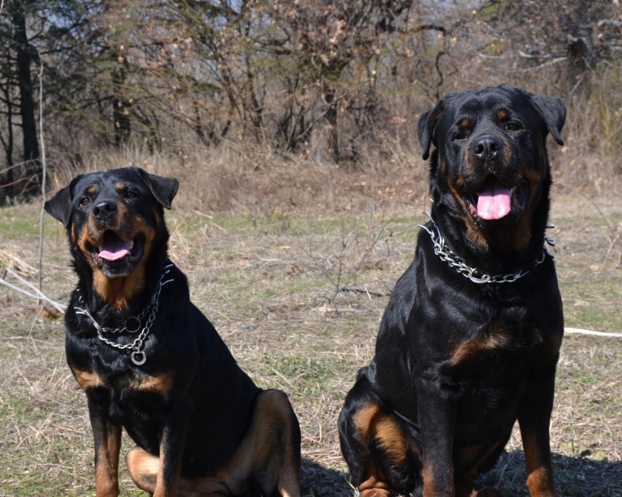 Обои Пара веселых ротвейлеров