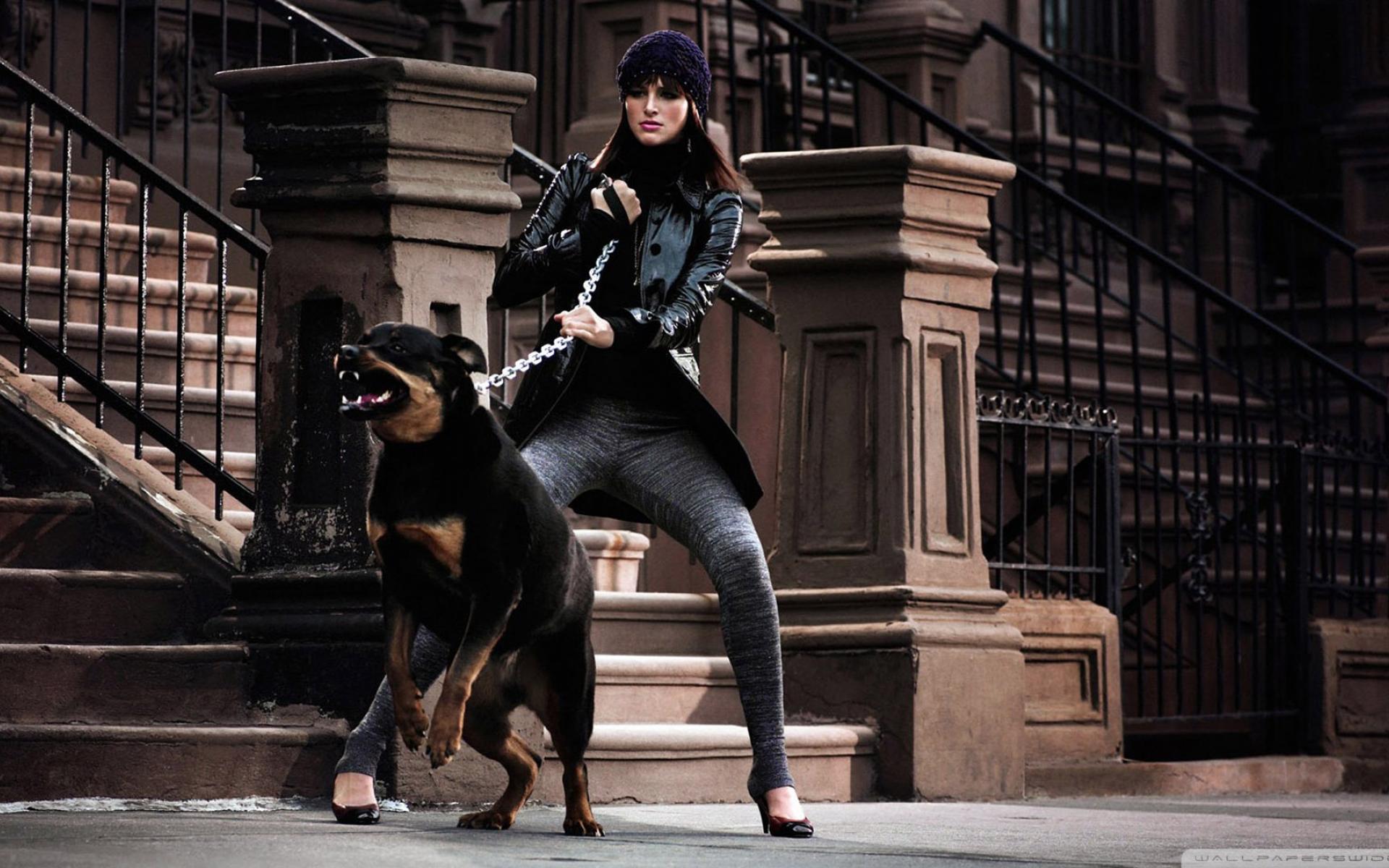 Обои Девушка держит ротвейлера