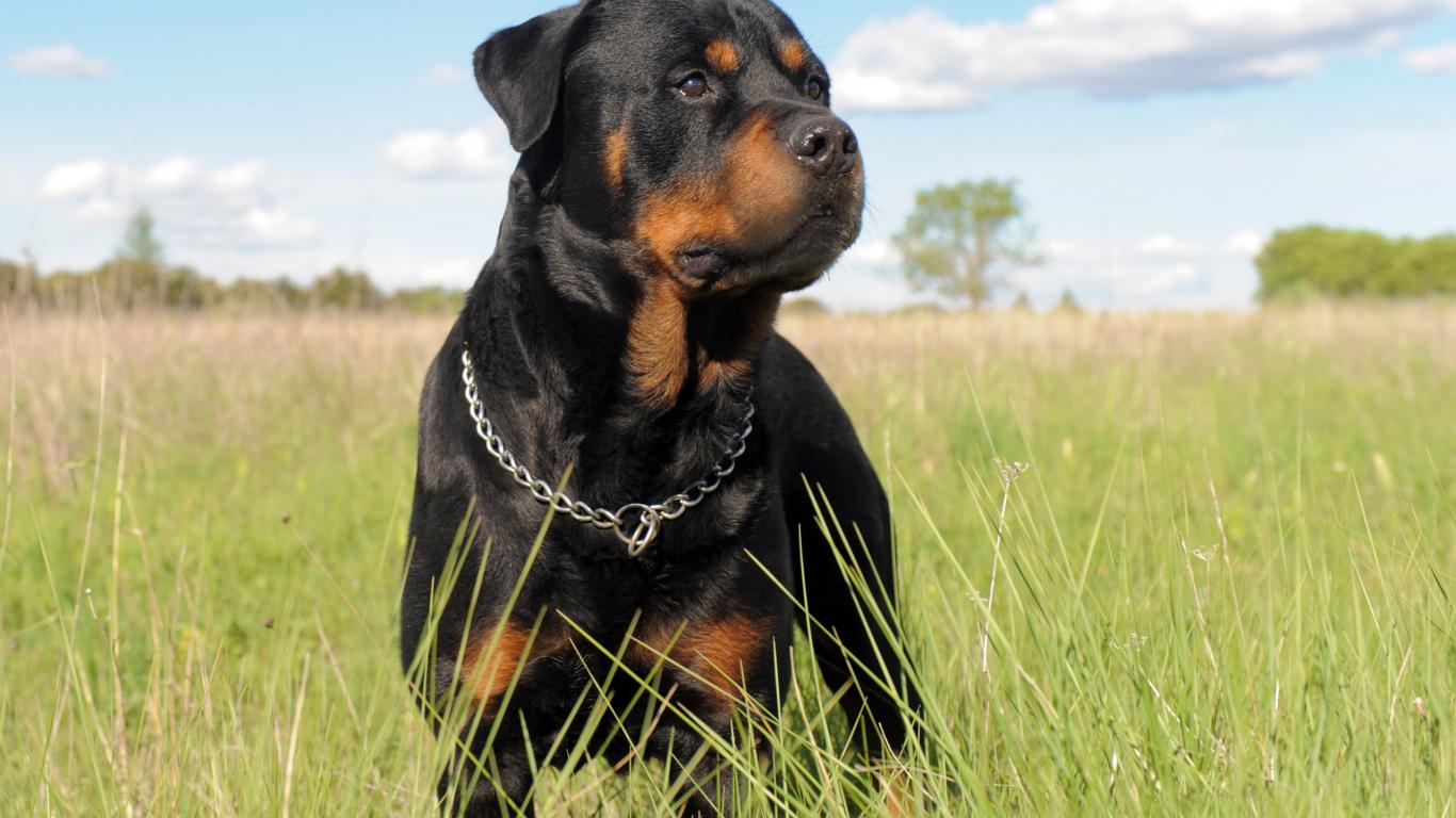 Обои Ротвейлер в траве