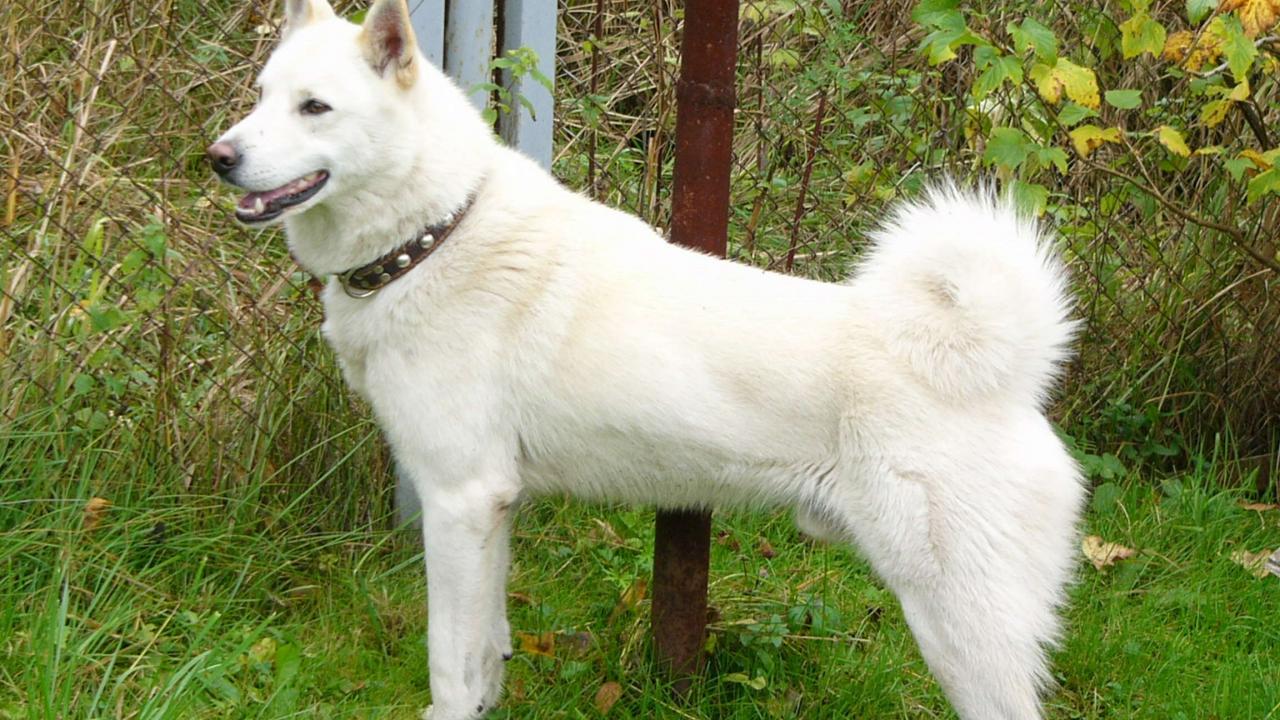 Обои Белая лайка у забора