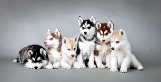 Обои Семья щенков лайки