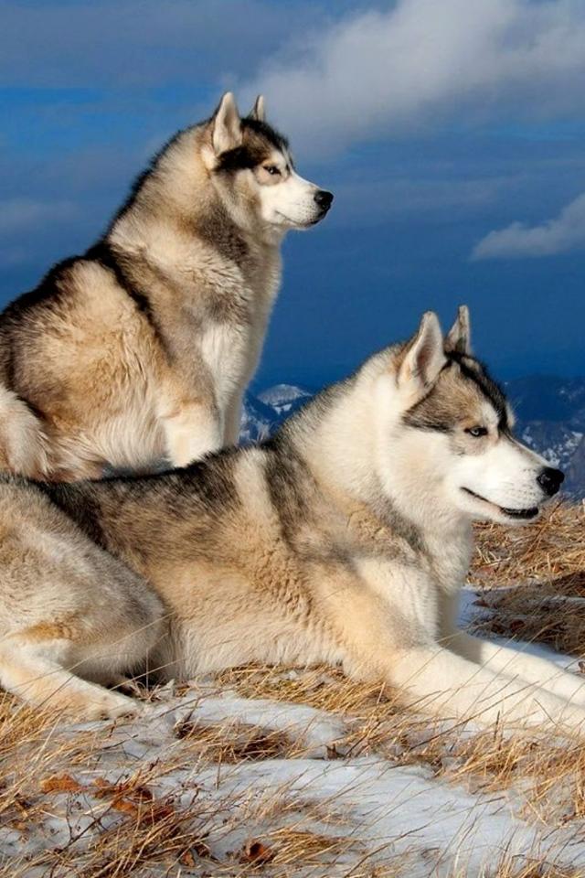» Обои Сибирские лайки в горах
