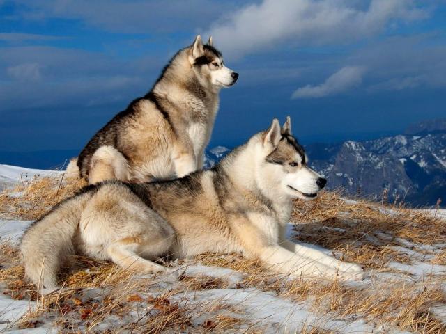 » Обои Сибирские лайки в горах