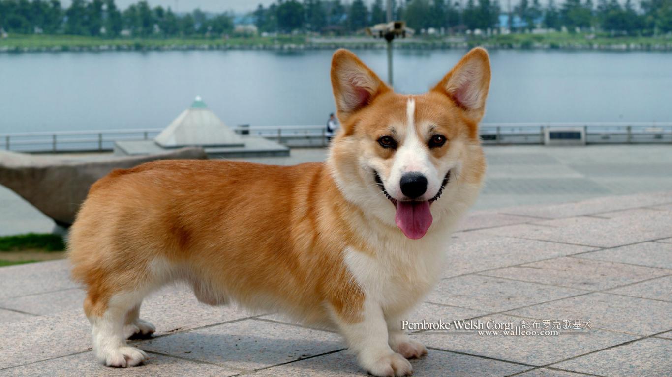 Обои Пес вельш-корги показывает язык
