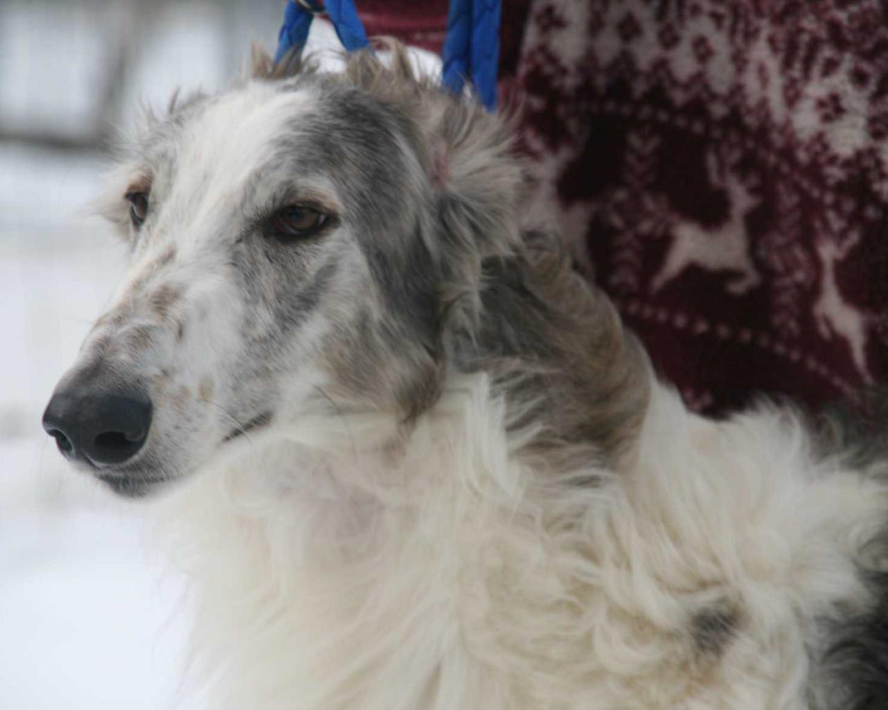 Обои Зимний наряд борзой собаки