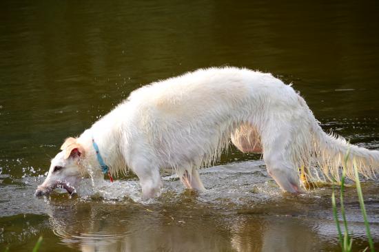 Обои Борзая играет в воде