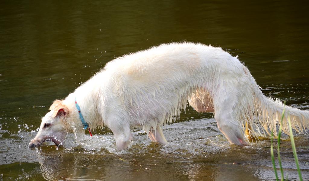 Обои Борзая играет в воде