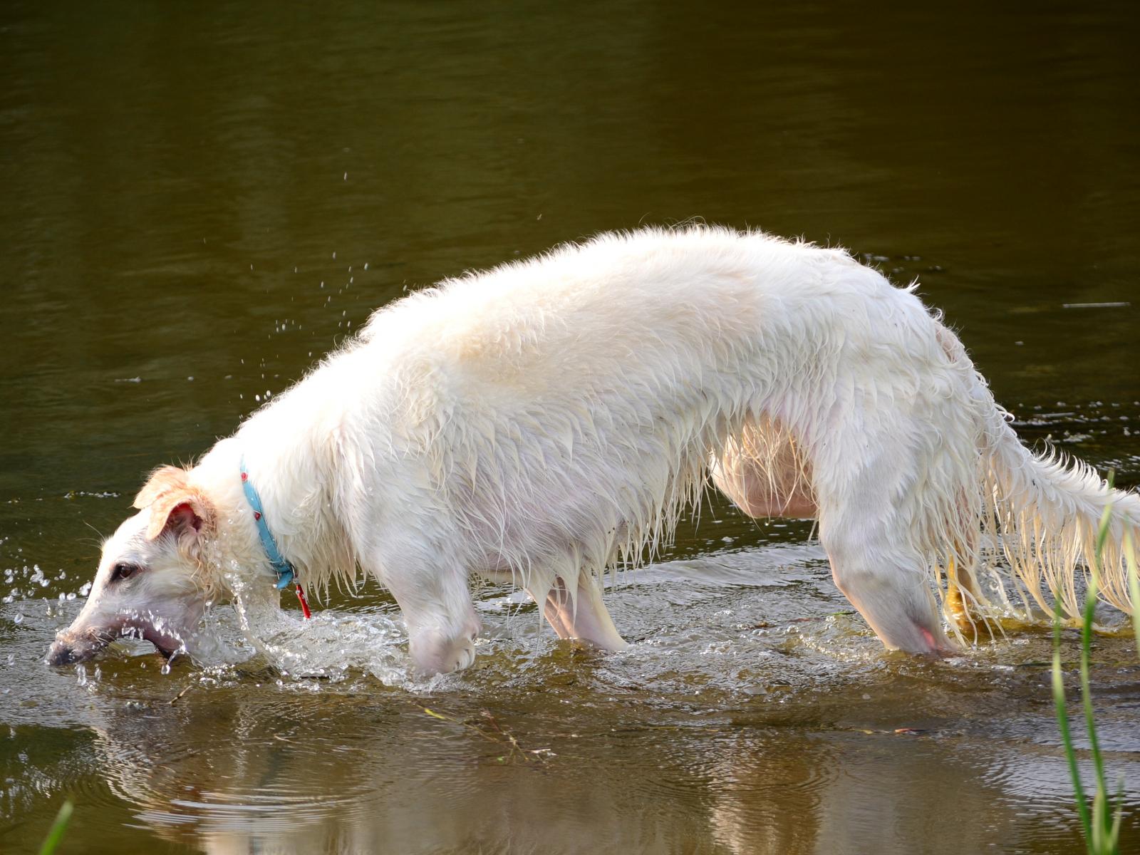 Обои Борзая играет в воде