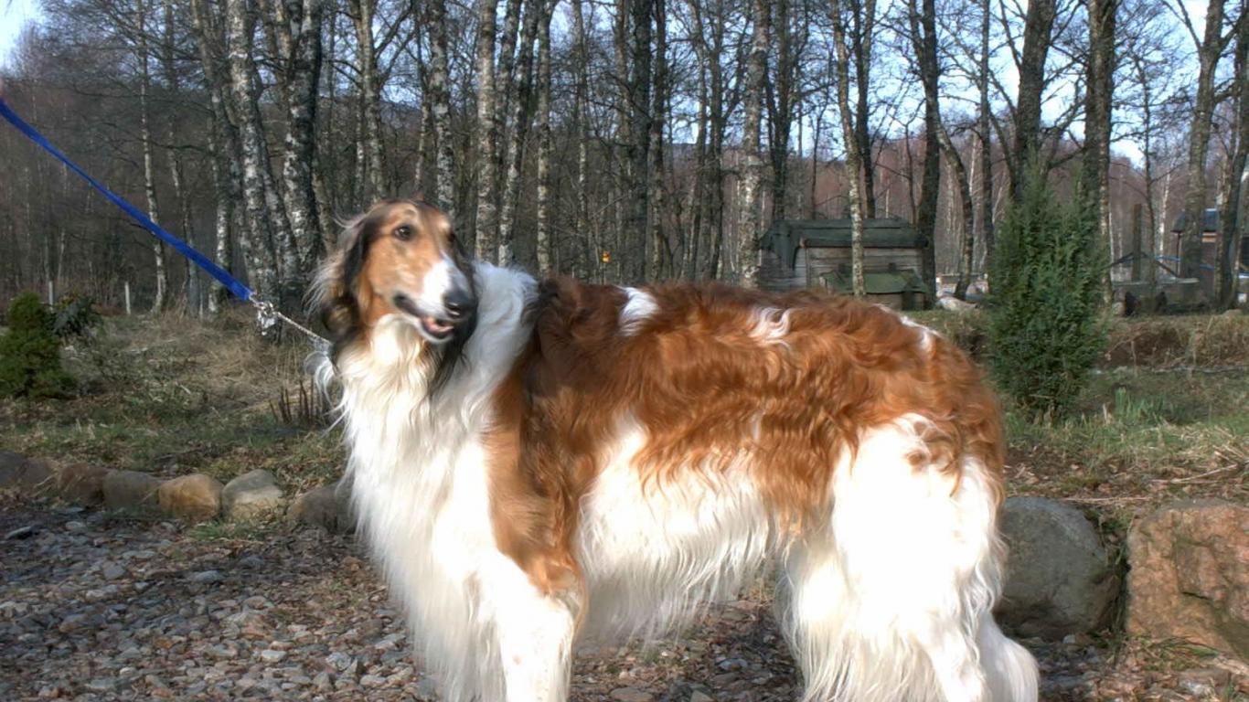 Обои Борзая собака на поводке