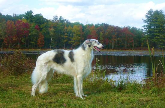Обои Русская борзая собака у озера