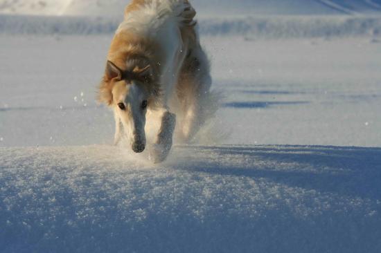 » Обои Борзая бежит по снегу