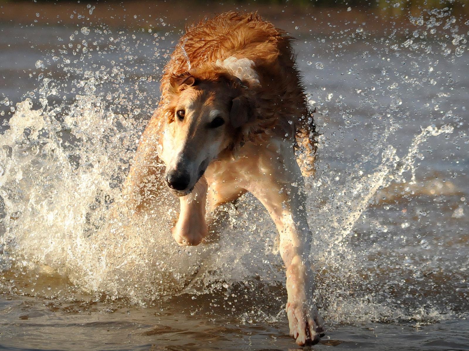 Обои Борзая бежит по воде