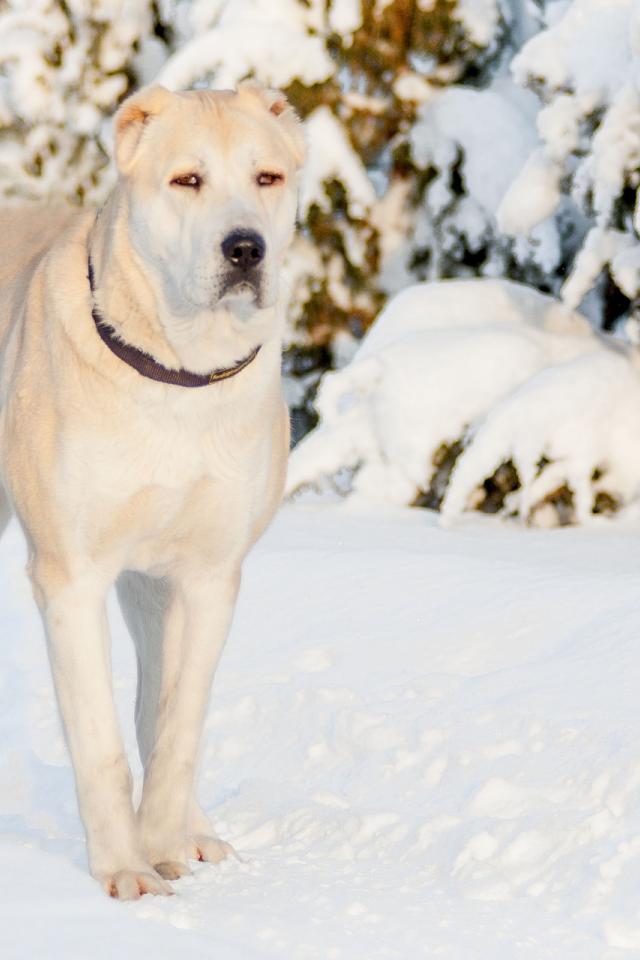 Обои Алабай гуляет зимой