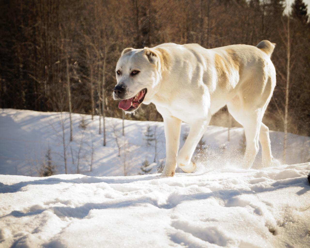 Обои Алабай в зимнем лесу