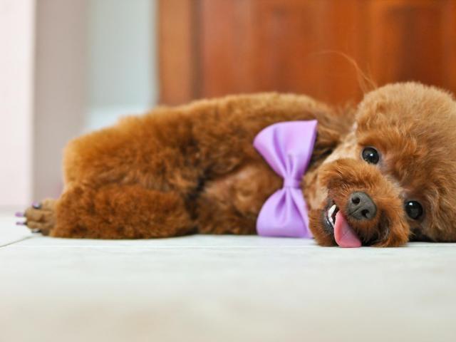 Обои Щенок пуделя с бантом