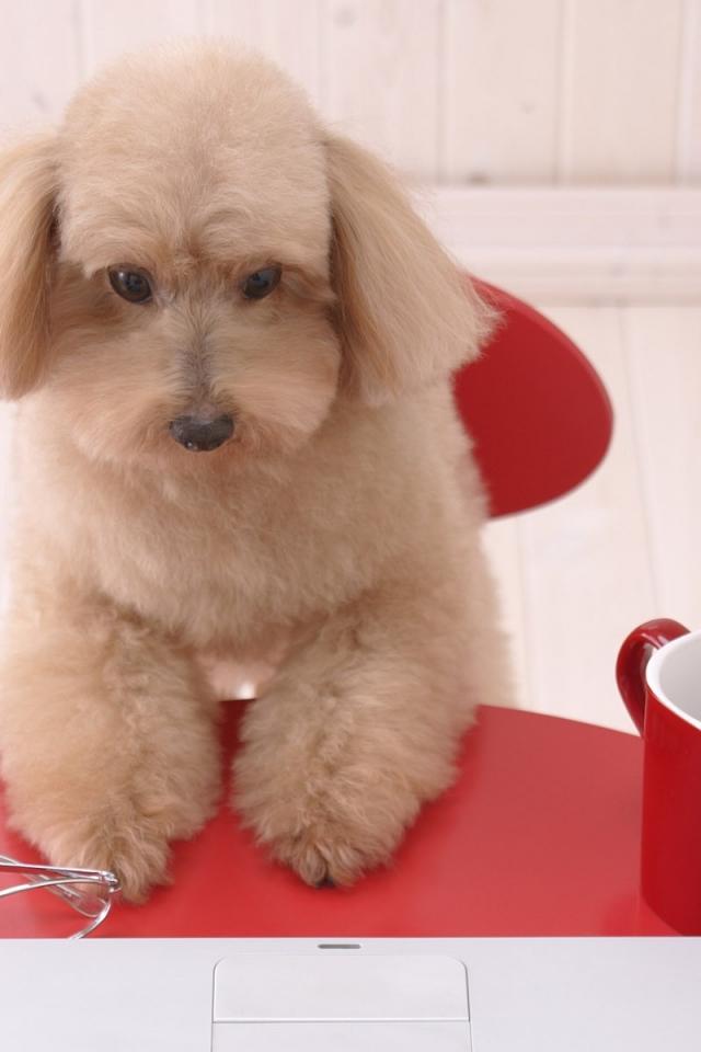 Обои Щенок пуделя на столе
