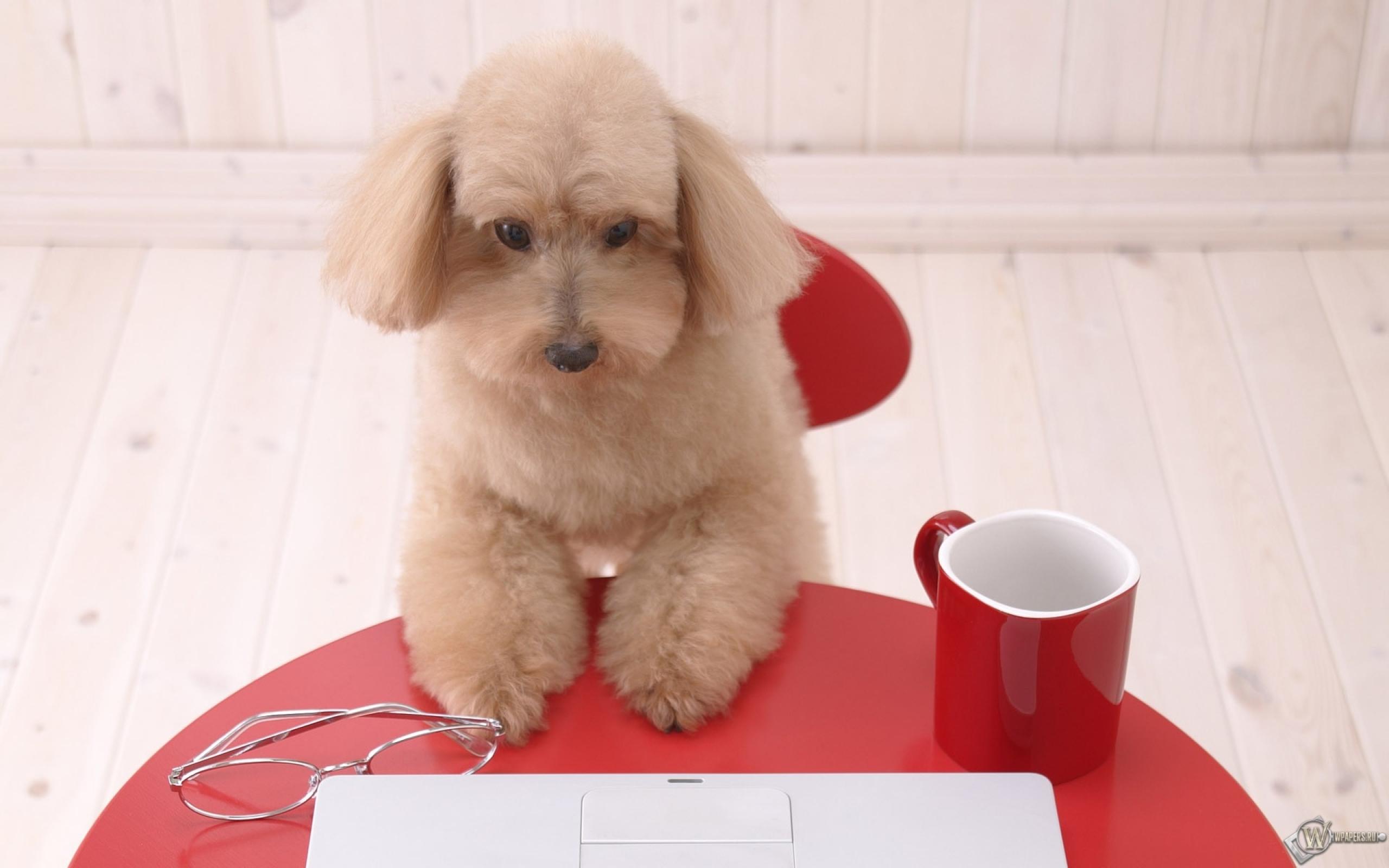 Обои Щенок пуделя на столе
