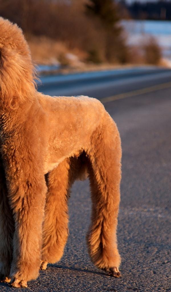 Обои Пудель на зимней дороге