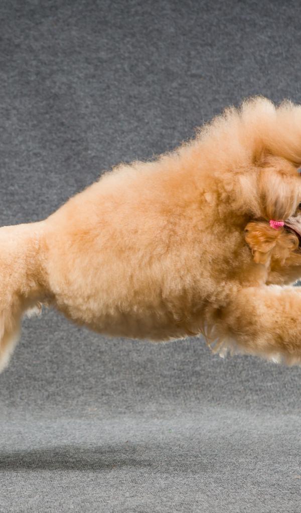 Обои Коричневый пудель прыгает