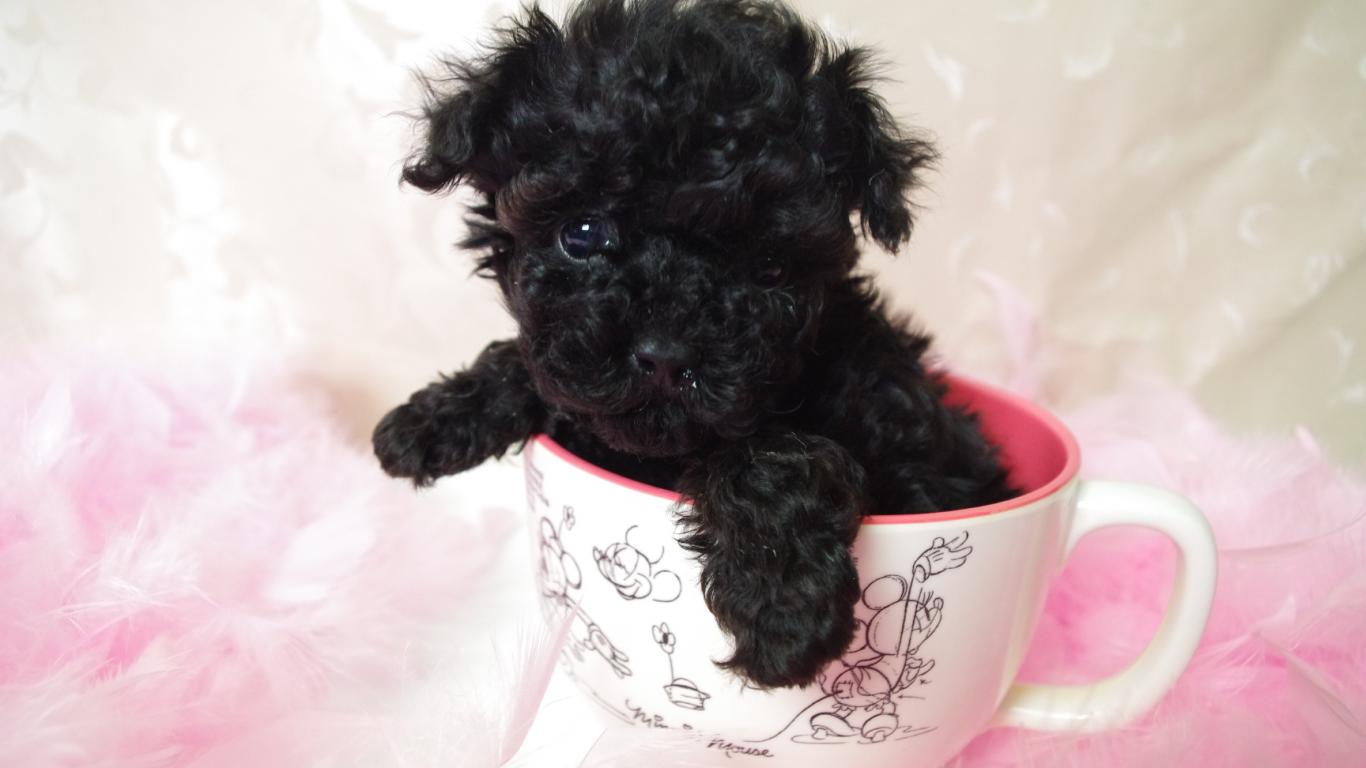 » Обои Черный щенок пуделя в чашке