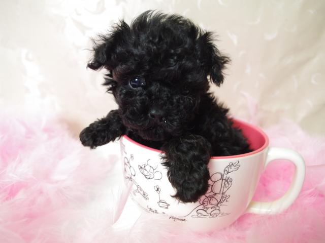 » Обои Черный щенок пуделя в чашке
