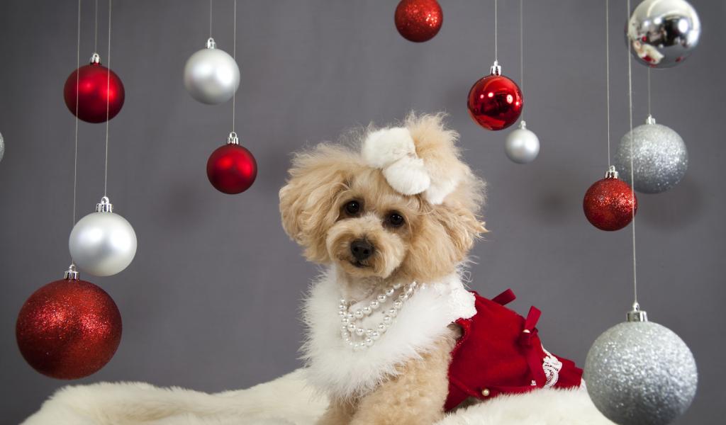 Обои Новогодний пес пудель