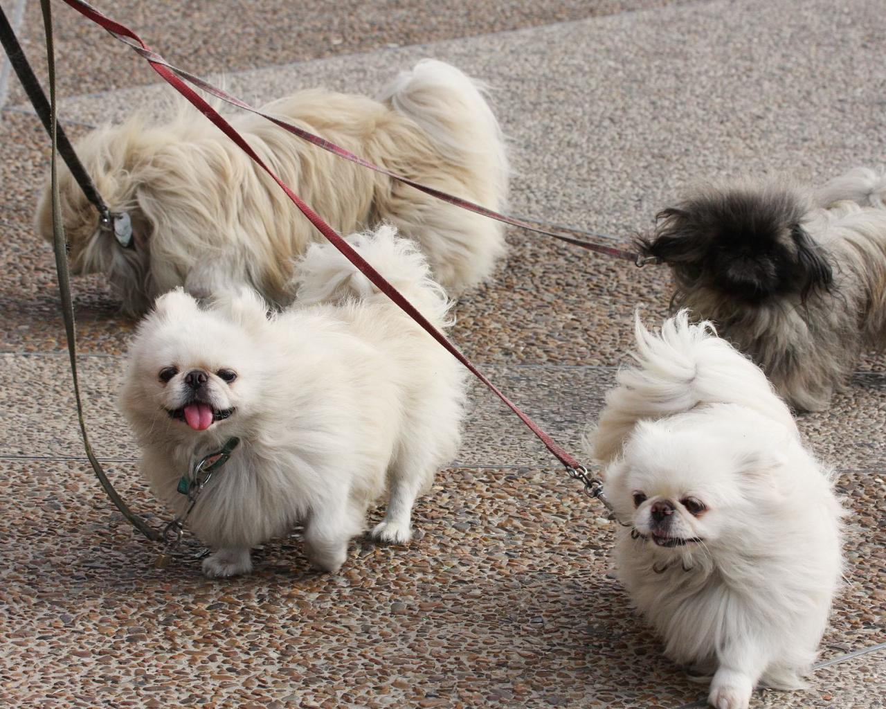 Обои Четверка пекинесов на прогулке