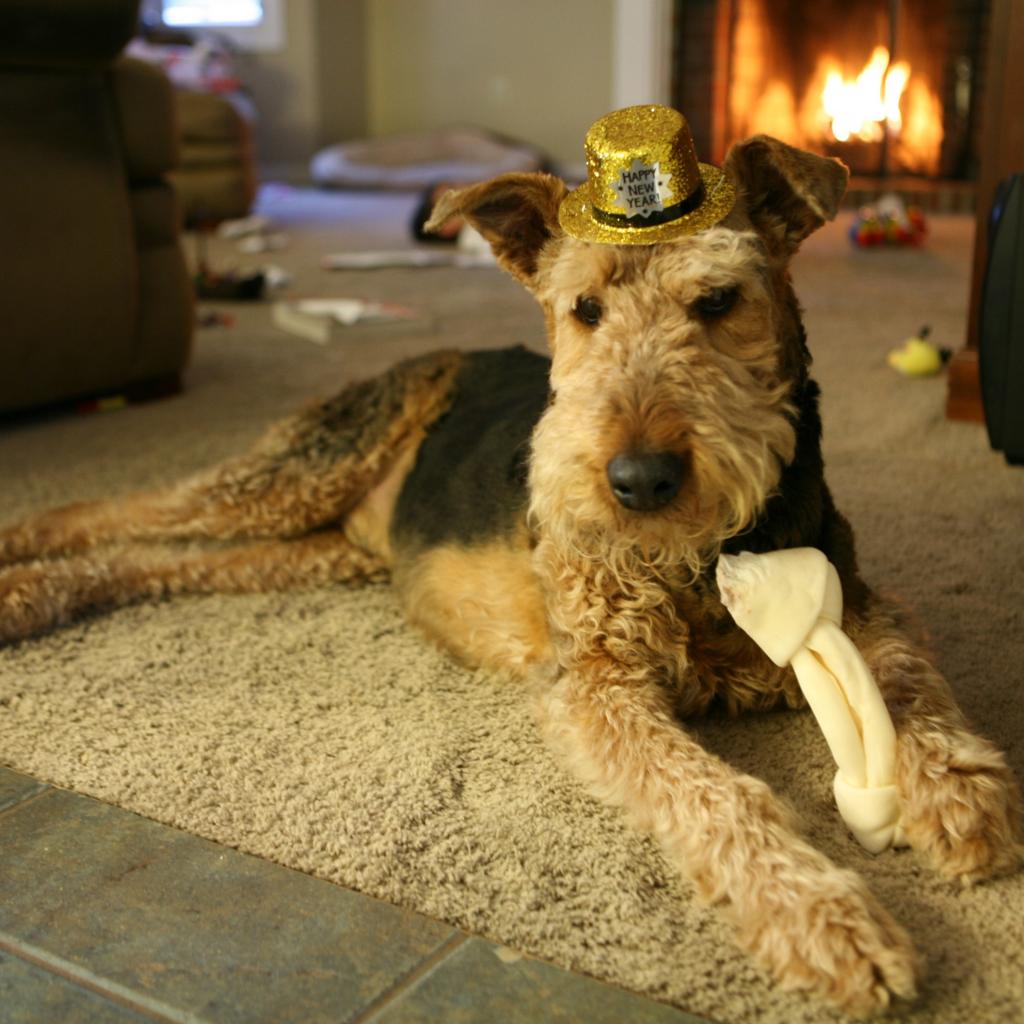 » Обои Эрдельтерьер в золотой шляпе