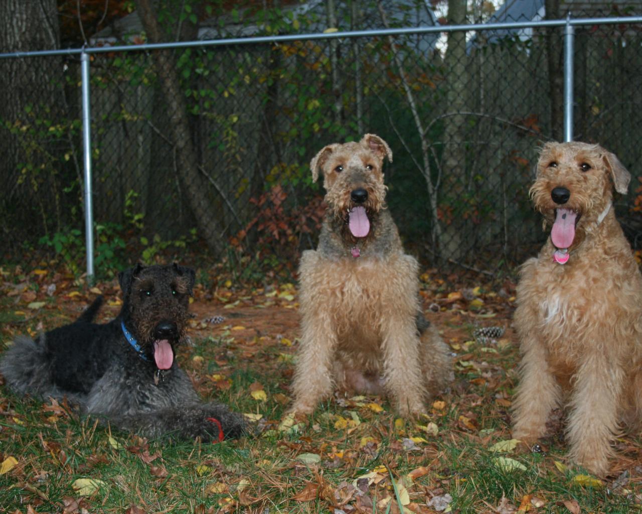 Обои Три эрдельтерьера на охране