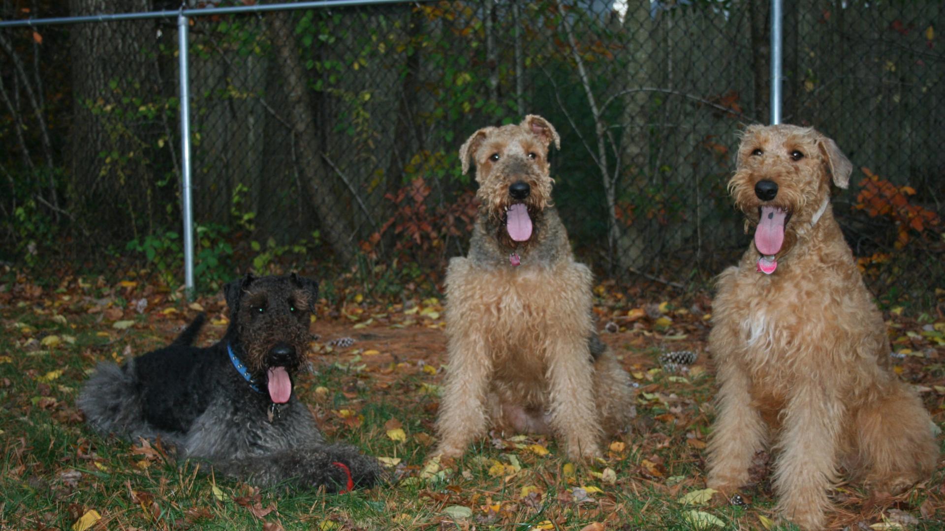 Обои Три эрдельтерьера на охране