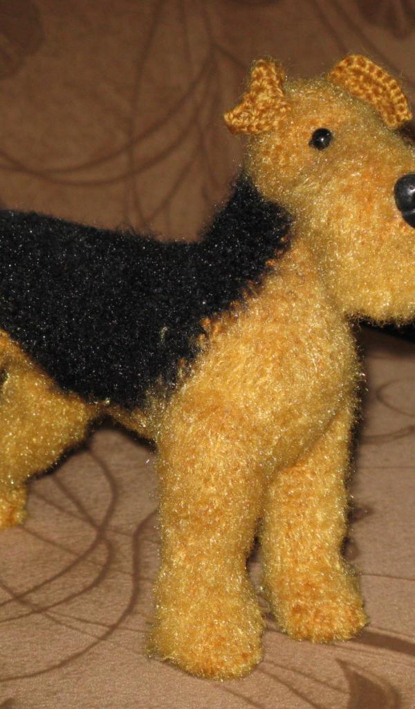 Обои Игрушка вязаный эрдельтерьер