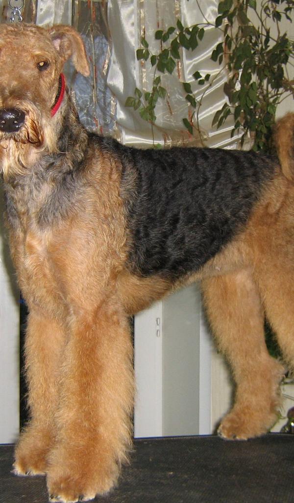 Обои Собака эрдельтерьер на столе