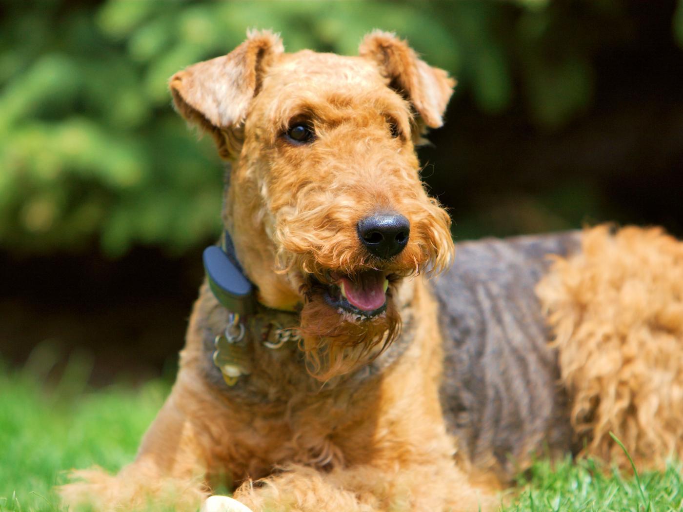 Обои Улыбающийся эрдельтерьер на траве