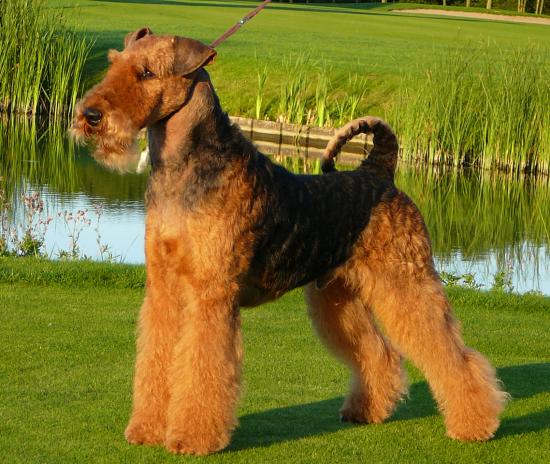 » Обои Собака эрдельтерьер у пруда