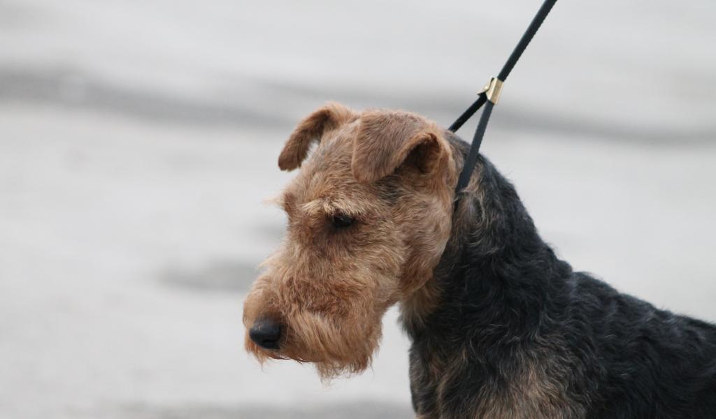 Обои Пес эрдельтерьер на поводке