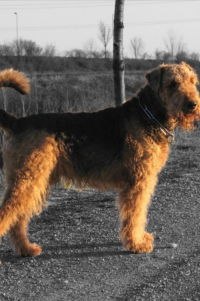 Обои Пес эрдельтерьер за городом